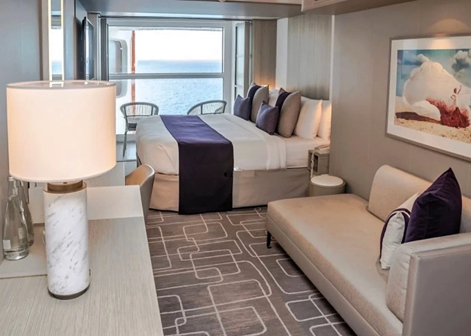 • Kajuty sú umiestnené v blízkosti lodného Spa. K ich vybaveniu patrí posilnený systém vzdušnej filtrácie, posteľ Queen-Size (v kategóriách Edge King-Size), veľké zasúvacie sklenené dvere, exkluzívne posteľné prádlo eXhale®, veľkorysé skladovacie priestory.